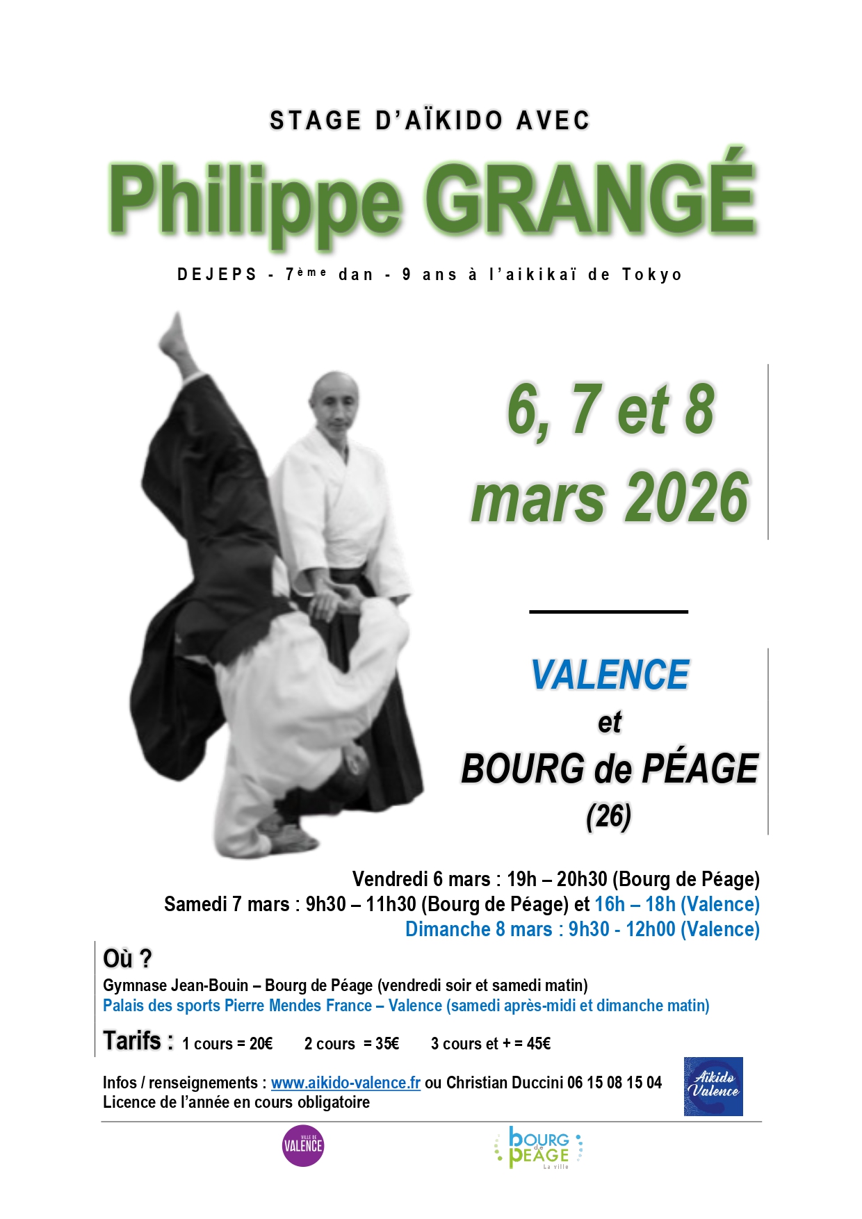 Stage d’Aikido à Bourg de Péage 6 mars et Valence 7-8 mars 2026